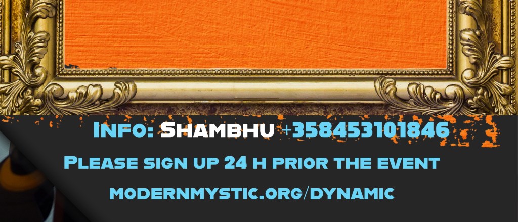 The practice is done eyes closed gently in your own safer space. Bring your own blindfold, if you wish so! Please do not arrive if sick. The practice is a physical exercise and will be guided at the beginning. Bring comfortable clothing and be as you are! YOU ARE WELCOME (avahanam)!
